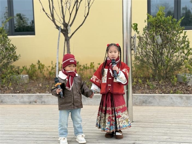 大一班童杨婉瑜和小一班廖一言小朋友作为幼儿代表发言,他们用稚嫩而真诚的话语,表达了对新年的期待与对活动的喜爱,也让大家感受到大小朋友之间纯真的情谊与共同的喜悦。