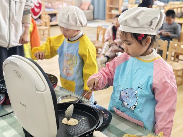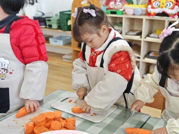 为了让孩子们在亲身参与和欢乐体验中,将日常美食课程所学转化为真实的生活实践,并结合元旦庆祝的契机,中班组特别策划了“年味食趣,中班同乐”美食一条街主题活动。