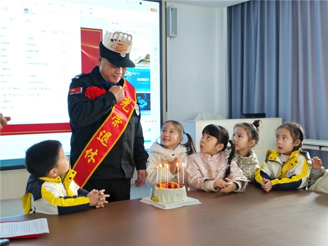 孩子们送上亲手制作的礼物,用稚嫩的声音说着“爷爷辛苦啦”“祝您天天开心”,纯真的祝福让现场暖意融融。