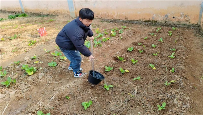 在学校的“开心农场”里,同学们有的挥着锄头给菜苗浇水施肥,有的正合力收割自己亲手种植的甘蔗,体验着“一分耕耘,一分收获”的喜悦。教室里同样热闹非凡,手工课上,同学们用彩纸和画笔制作出一幅幅充满童趣的作品;而在奶茶制作活动中,大家围在锅边,认真地搅拌着茶叶和牛奶,空气中弥漫着阵阵香甜。