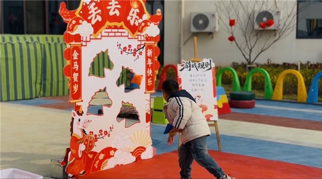 2.“新年丢丢乐”投掷游戏:将五个沙包投掷到目标圈,锻炼手眼协调。