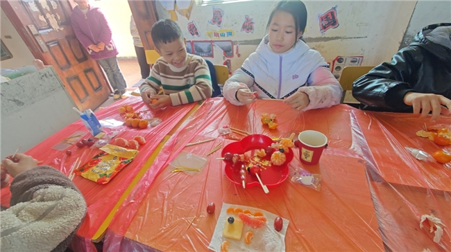在实践环节,活动设计兼顾趣味性与实效性。围绕“万物皆可糖葫芦”的创意主线,教师精心准备了山楂、蓝莓、草莓等多样化的食材,为学生们提供了广阔的造型设计与搭配空间。学生们充分发挥自己的想象力和创造力,将不同食材巧妙组合,制作出形态各异、色彩斑斓的冰糖葫芦,极大地激发了他们的动手热情。