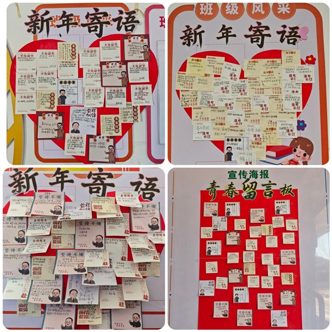除了分享温暖与美好,不少同学也借着便利贴倾诉烦恼,学习的焦虑、挚友的小摩擦随笔尖流淌,情绪得以宣泄,心绪慢慢平复。小小的便利贴成了情绪树洞,帮助大家释放压力。对于心怀憧憬、渴望新年升入更高学府的九年级学子来说,他们更将这份寄语化作刻苦奋进的动力,“全力以赴冲刺中考,不负自己的努力”、“再坚持坚持,我一定能考上一中”一句句坚定的话语,既点燃了自己永不言弃的斗志,更凝聚起整个班级的士气,坚定了大家奔赴理想高中的信心。