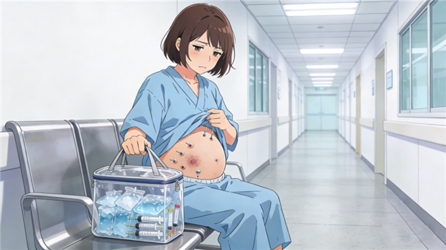 那是金姐在这个周期的第七次往返。她手里拎着一个装满冰袋的小保温袋,里面塞着几支尚未打完的短效促排针。她熟练地坐在长椅上,撩起衣襟,腹部密密麻麻的淤青和针眼清晰可见。