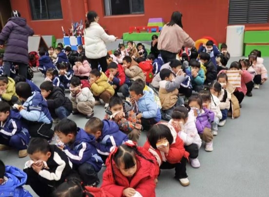 全体师幼按照指定疏散路线撤离至安全区域后,各班老师立即清点人数、查看孩子们的情况,并向元园长汇报人员撤离情况,确保所有人员安全撤离,无一人遗漏。