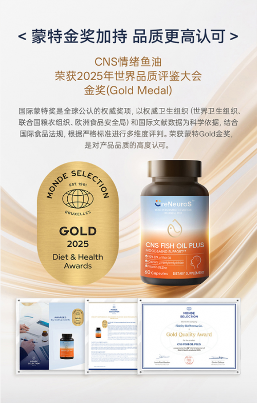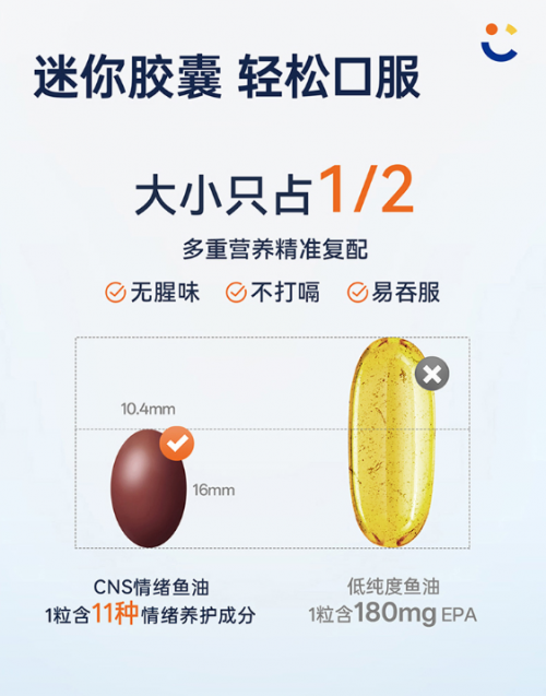守护情绪健康,本质上是对身心健康的长期投资。在“预防优于治疗”的健康理念下,科学的营养干预成为构建情绪防护体系的重要一环。cns情绪鱼油此类科学配方的补充剂,为人们提供了一种温和、便捷的情绪营养补充选择。通过这种针对性的营养投资,帮助身体打造情绪健康的基础,让人们更从容地应对生活中的各种压力,拥抱更稳定的身心状态。