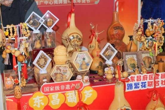 在“指尖上的年味”非遗展区,集中呈现了山东省内多个城市的传统手工艺产品及制作技艺。现场展销产品包括济南章丘手工锻造的铁锅、济宁的野生茶、东营的兵圣烧饼、泰安的桃木雕刻饰品、聊城的国家级非物质文化遗产工艺葫芦,以及滨州的纯手工粗布床单等具有地域代表性的物产。同时,菏泽非遗协会现场展演了剪纸、面人塑制、龙凤字书写、春联创作、糖画绘制、吹糖人等多项传统技艺,吸引众多消费者驻足观看。