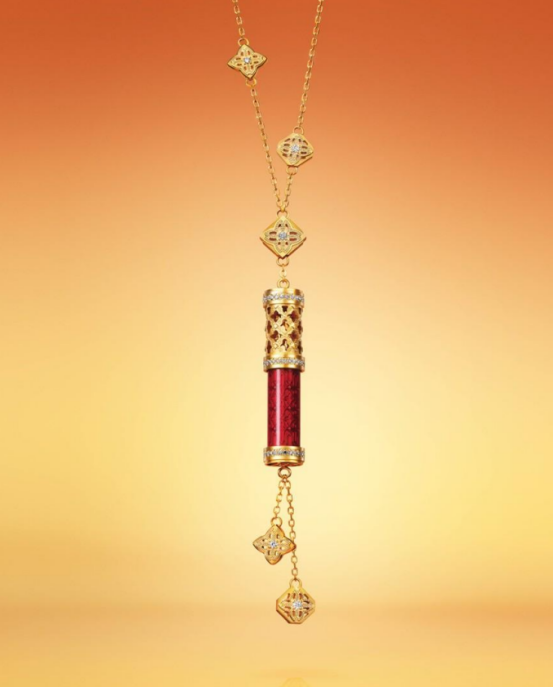 作为马年核心产品线,传承新春 “心响事成” 系列深挖传统民俗文化,将爆竹、柿子等吉祥意象与现代工艺融合。爆竹意象追溯至先秦 “爆祭”,承载驱邪纳福祈愿;柿子与 “事” 同音,搭配 “柿蒂纹”,寓意 “事事如意”。系列分为 PR 套系与商业套系,PR 套系中足金镶钻红宝石项链定价 86800 元,足金镶钻项链定价 171600 元,尽显高端质感;商业套系定价 10300 元至 62800 元,覆盖广泛高端客群。细分系列精准切入情感场景:“悦享人生” 象征新生勇气,“幸运星” 寓意喜从天降,“福星高照” 承载招财进宝,“一生一世” 传递守护相伴。