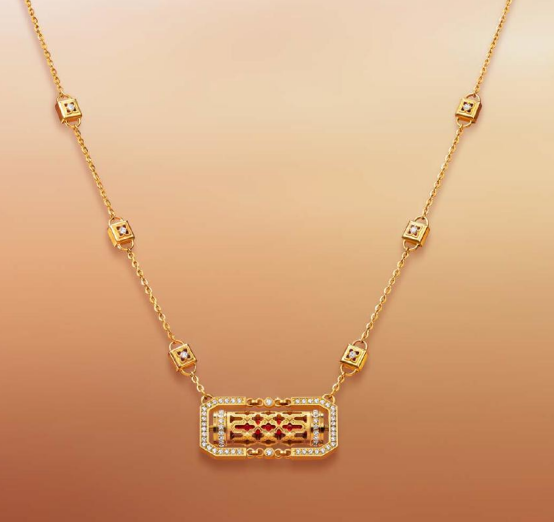 系列延续周大福 “福文化” 基因,将传统吉祥纹样与马元素巧妙联动。柿蒂纹作为中国传统吉祥符号,因 “柿” 与 “事” 同音,寓意 “事事如意”,被精准融入吊坠边缘与手链链节设计;双钱纹两两相连,既象征 “好事成双”,又暗含 “财源滚滚” 的祈愿,成为项链坠饰的核心元素;而传统回纹则以极简线条形式点缀首饰细节,寓意 “福寿绵长”。这些符号并非简单堆砌,而是通过几何解构与比例优化,与现代设计语言无缝衔接,让传统文化底蕴自然流露。此举正是周大福持续挖掘中华文化底蕴,赋予珠宝更深刻文化内涵的体现,旨在“用珠宝让世界看见中国之美”。