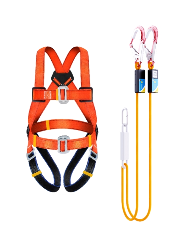 该安全带搭载双钩压力传感器,可实时监测挂钩挂载状态。一旦出现双钩均未挂稳的情况,设备会立即发出蜂鸣报警,并通过无线通信同步向管理平台发送预警。若系统检测到人员坠落,还将自动触发报警并拨打紧急联系人电话。同时,产品具备作业面高度识别功能,在作业人员登高后自动进入预警模式,实现作业全程防护无遗漏。为杜绝人为违规关机,设备采用NFC卡片授权关机设计,仅管理人员持有专用卡片,从根本上防止作业人员自行关闭设备所带来的安全隐患。