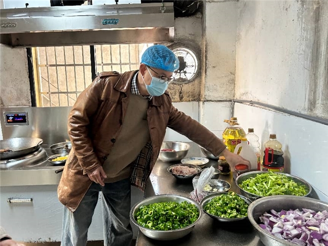 随后,检查组深入厨房操作间,对烹饪设备运行情况、餐具清洗消毒流程、地面排水设施及从业人员个人卫生状况进行了细致检查。林校长指出烹饪过程是保障食品卫生的核心环节,必须严格执行生熟分离,确保厨具餐具彻底消毒,加工环境时刻保持整洁有序。
