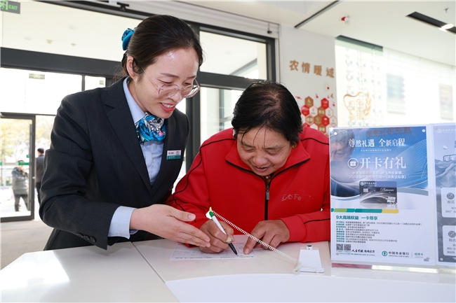 镜头中,银行大厅明亮整洁,“农情暖域”的标语格外醒目。老年客户身着红色外套,在工作人员的协助下认真填写资料,针对老年客户视力下降、操作不熟练等问题,古城支行专门推出“适老服务套餐”:配备放大镜、老花镜等便民工具,开设“敬老绿色窗口”,安排专人提供“一对一”业务指导,让老年客户办理业务更省心、更舒心。