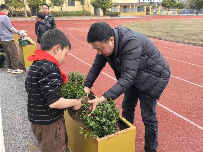班队会结束后,队员们在学校党支部的带领下来到户外。挖坑、扶苗、填土、浇水,亲手种下一棵小树苗,与它约定一同成长,在春天里播下希望,见证生命的力量。