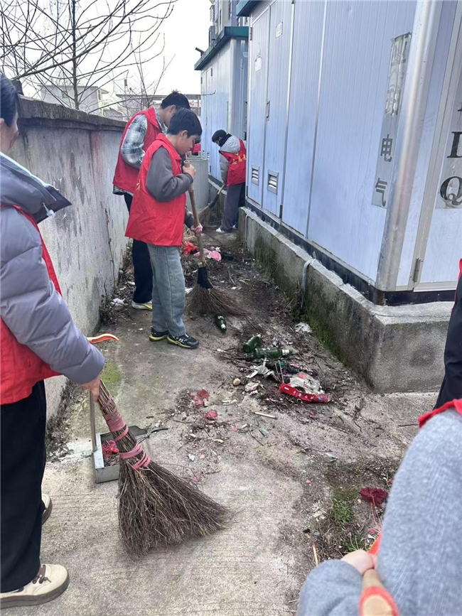 上午9点,十余名学生志愿者在政教处、团委老师的带领下,携带扫帚、簸箕、垃圾袋等工具,来到学校附近的浒湾居民小区。大家分工协作,有的清扫路面落叶和杂物,有的捡拾绿化带中的烟头、塑料袋,有的清理墙面上的“牛皮癣”。同学们热情高涨,不怕脏、不怕累,不放过任何一个卫生死角。经过一个多小时的辛勤劳动,小区面貌焕然一新,赢得了过往居民的一致称赞。