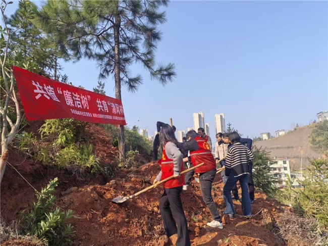 活动现场,大家分工协作、干劲十足,呈现出一派热火朝天的景象。社区党员干部与文旅公司职工两两成组、相互配合,将一株株树苗稳稳植入土中。经过一上午的辛勤劳动,六十余棵新栽的树苗迎风挺立,为初春的杨梅园增添了一抹盎然绿意。参与活动的党员干部纷纷表示,“绿水青山就是金山银山”,亲手种下一棵“廉洁树”,既是对生态环境的贡献,更是在心中播下了一颗清正廉洁的种子,要时刻提醒自己像树木一样扎根深处、正直向上,经得起风雨的考验。
