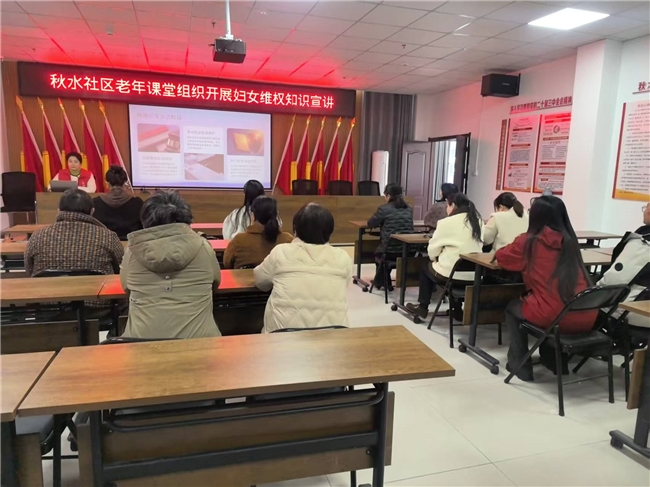 为深入推进妇女权益保障工作,切实提升辖区老年女性的法律意识与依法维权能力,打通老年女性维权服务的“最后一公里”,秋水社区老年课堂以“三八妇女维权周”为契机,开展妇女维权知识专题宣讲活动,用法治力量为辖区老年女性撑起“保护伞”,送上一份贴心的“法治节日礼物”。