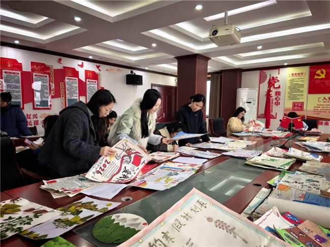 学校党支部书记、校长赵宾和副校长王欢欢带领老师们认真翻阅、细致点评作品,在交流中见证孩子们假期里的成长与收获。这不仅是一次作业展评,更是泰伯小学“五维善育”理念在假期里的生动实践。