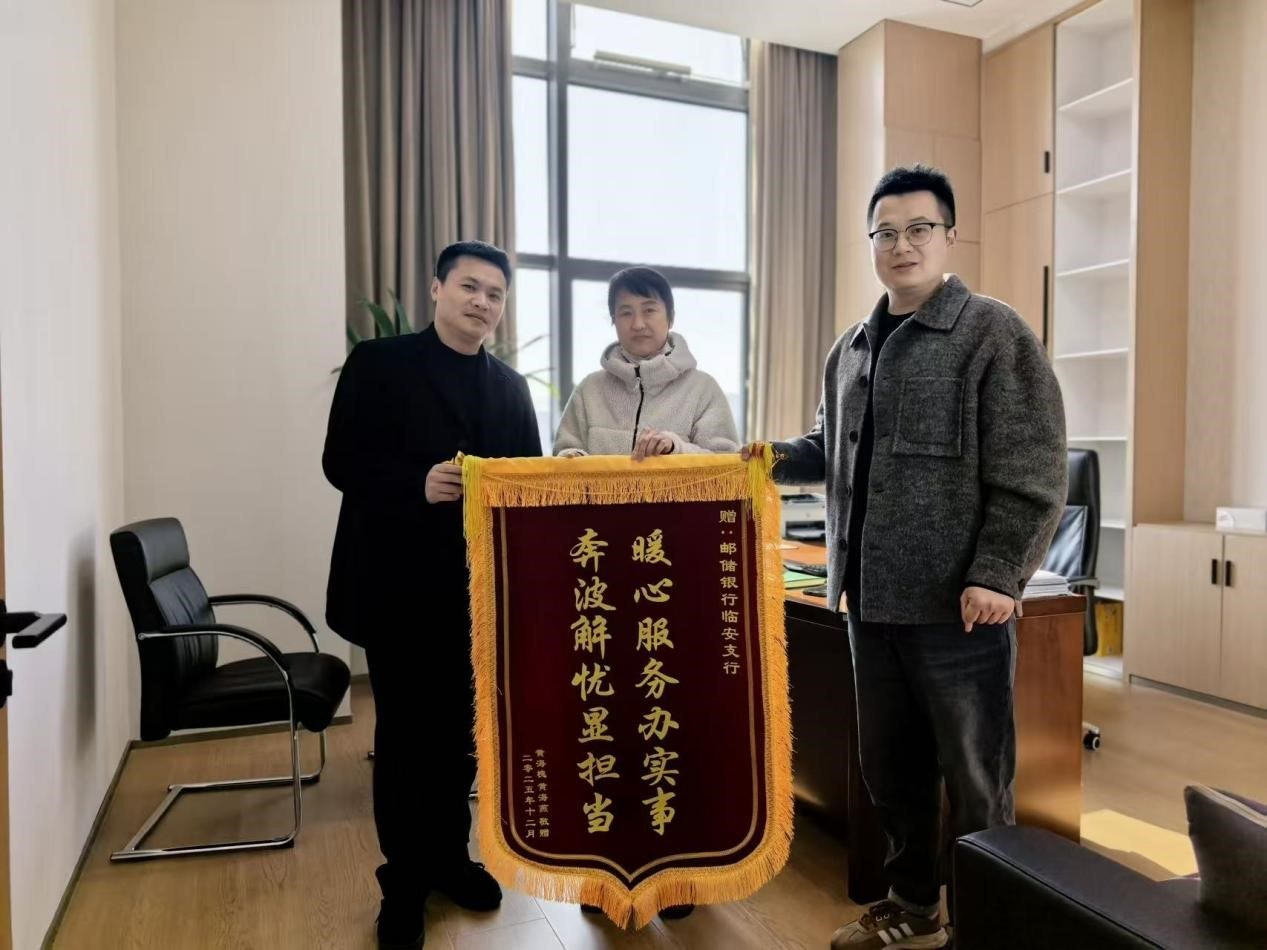 2025年12月26日,黄女士特意带着一面写着“暖心服务办实事 奔波解忧显担当”的锦旗,专程送到了邮储银行临安区支行,当面感谢雷晔和团队的费心费力。照片里,站在右侧的雷晔笑得格外实在——这面锦旗,是对他“多管闲事”的最好认可。