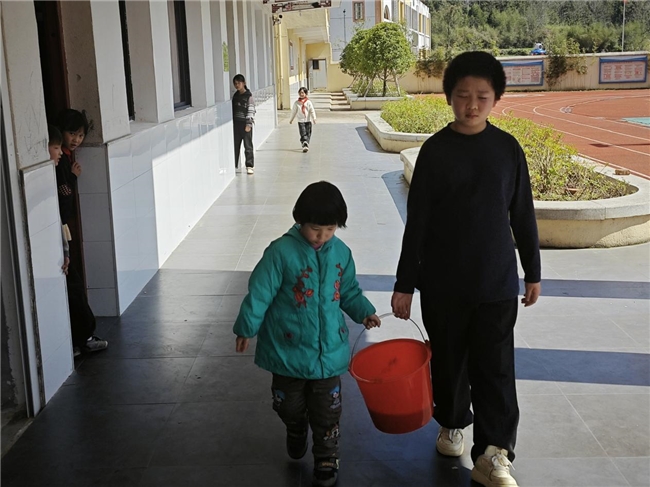 生活中关心帮助低年级学生,帮助提水、整理物品、安全上下楼梯,形成友爱互助的良好班风校风。