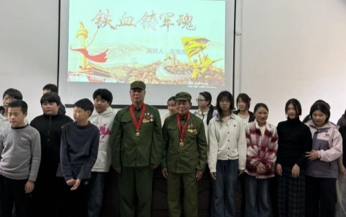 “倒下的是身躯,挺起的是国威”。援越抗美战士们的英雄事迹深深震撼和感动了在场学生。当李海亮宣讲结束时,全场师生报以热烈的掌声。最后,二位老军人和学生合影留念。