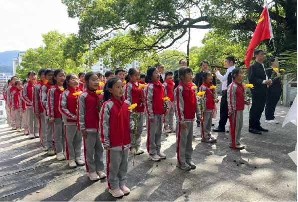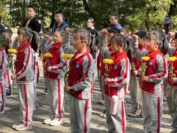 活动最后,卢校长对全体少先队员提出希望与要求,勉励队员们铭记历史、缅怀先烈,把红色基因融入血脉、植入心田;以英烈为榜样,树立远大理想,勤奋学习、锤炼品格,将爱国之情、报国之志转化为日常学习和生活的实际行动,努力成长为担当民族复兴大任的新时代好队员,让革命先烈的精神代代相传。