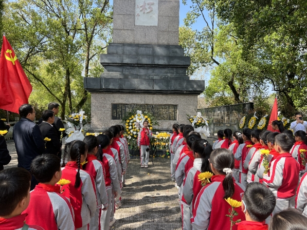 少先队员代表刘芷卉同学现场讲述资溪县烈士陵园的历史渊源与革命先烈的英勇事迹,感人至深的故事,让全体师生再次接受深刻的红色精神洗礼,深刻感悟革命先烈的崇高品格、坚定信念和无私奉献精神,激发了全体师生的爱国主义情怀和历史责任感。