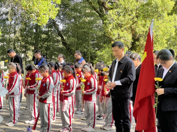 为深切缅怀革命先烈,传承红色基因,厚植爱党爱国爱社会主义情怀,深化党建带队建育人成效,在清明节来临之际,资溪县第三小学党支部、少先大队携手未成年人成长指导中心、崇礼社区,组织党员教师、少先队员前往资溪县烈士陵园,开展“清明祭英烈 薪火永相传”主题祭扫活动,以庄重的仪式追思英烈事迹,赓续红色血脉,引导全体师生从革命先烈的精神中汲取奋进力量,坚定理想信念。