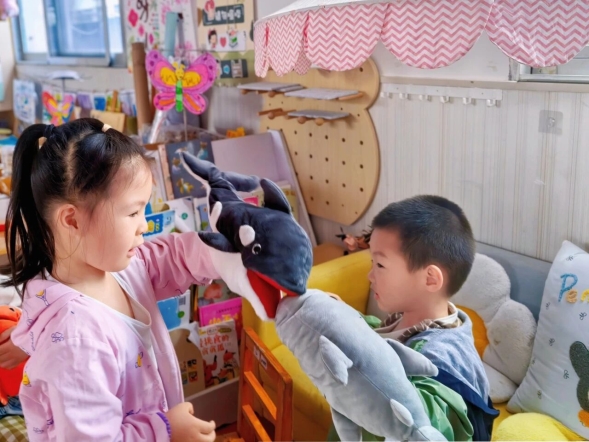 在室内情景游戏与手偶互动中快乐启蒙,在户外绘本体能闯关中强健体魄。
