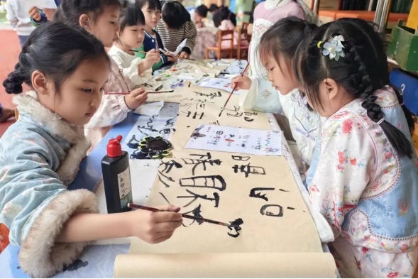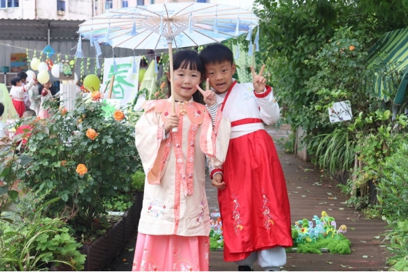 春风拂雅韵,大班萌娃身着古韵汉服,赴一场诗意满满的春日诗会。汉服秀古韵悠扬,童声诗朗诵声声悦耳。孩子们手执素扇,笔墨留香,将诗词意境绘于扇面;春日诗会争霸、飞花令诗意对决,一句句经典脱口而出。