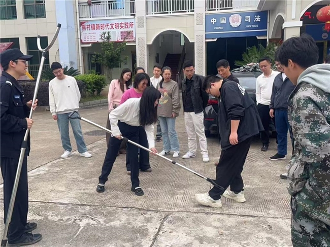 本次活动分两部分进行,第一部分在演练开始前,派出所民警向窗口工作人员和参与演练的人员讲解了防暴盾牌、防暴钢叉、防暴棍等器械的使用方法、操作要领和注意事项,并结合反恐防暴应急处置技能和经验,现场指导联防联控组人员进行实操演练。