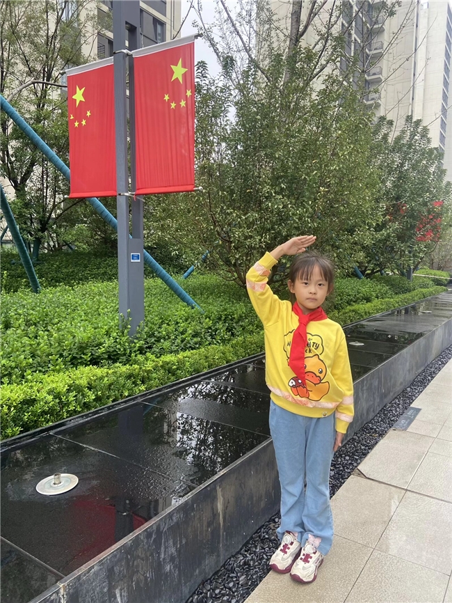 “我和国旗合个影,我对祖国说句心里话”活动中,校园里、街道上随处可见鲜艳的五星红旗。孩子们身着整齐的校服,或敬着标准的队礼,或绽放灿烂的笑容,有的与国旗单独定格瞬间,有的和小伙伴们并肩依偎国旗旁,一句句“祖国妈妈,我爱您”“祝祖国繁荣昌盛”,稚嫩的话语里满是对祖国的真挚祝福,每一张合影都是童心与国旗的深情对话。