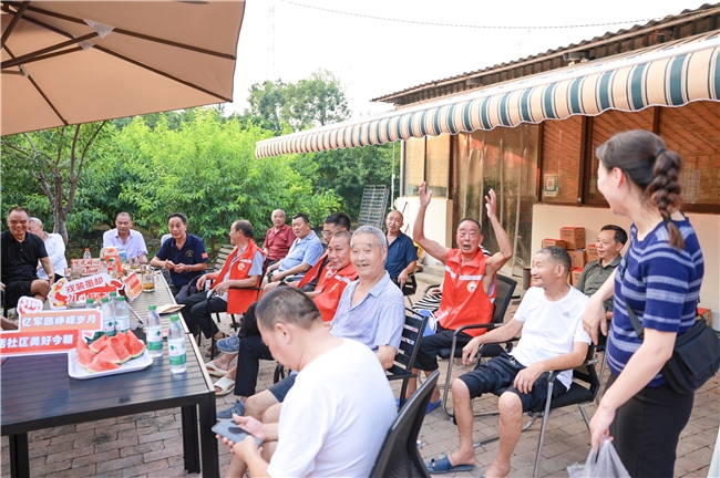 “请张医生帮我看看降压药怎么吃”“这按摩手法太实用了”,在渡桥村亲邻茶铺里,一场 “情暖退役军人” 活动热闹开展。免费义诊、义剪服务刚结束,中医养生讲座又开讲,老兵们围坐一堂交流心得,现场还响起了世运知识问答的互动声。这是该村 “三邻文化” 浸润项目的生动实践。