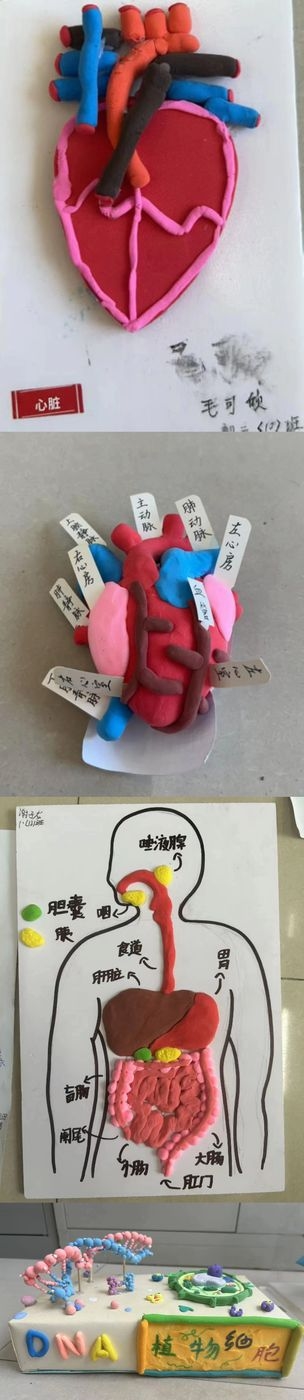 学科实践领域更显创意,数学几何立体模型棱角分明,概率实验道具暗藏生活智慧;生物细胞结构模型、人体器官模型细节满满,黏土与废旧材料赋予知识鲜活形态;物理小发明巧思不断,科学原理卡片让创新与理论完美融合。