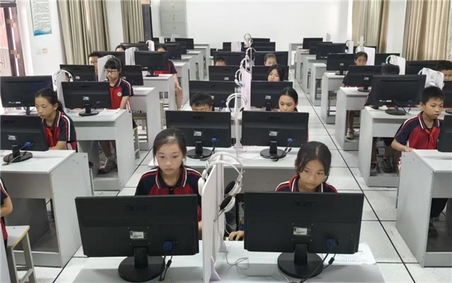 活动中,学生们身着统一校服,或紧盯屏幕思索诗词意境,或快速敲击键盘完成答题,在诗词的字里行间穿梭探索。孩子们从诗词填空的精准作答,到诗句赏析的深度思考,每一道题都是一次与古人的对话。键盘、鼠标成为他们与诗词共鸣的桥梁,让传统文化在数字时代焕发出新的活力。看着孩子们在屏幕前自信答题的模样,不难发现,学校始终以文化为根,通过丰富的活动让诗词融入日常,让少年们在诗意中汲取成长的力量,承续才乡文脉的精神底色。