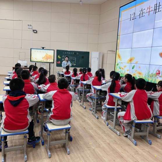 《在牛肚子里旅行》(范梦宁 第三小学):范老师以童话故事情节为线索,引导学生梳理红头在牛肚子里的“旅行经历”。通过合作读、配音读多种朗读方式让学生了解“牛的四个胃如何工作”,让学生在趣味互动中理解科学知识,感受青头与红头的友谊,课堂充满童真与思辨。