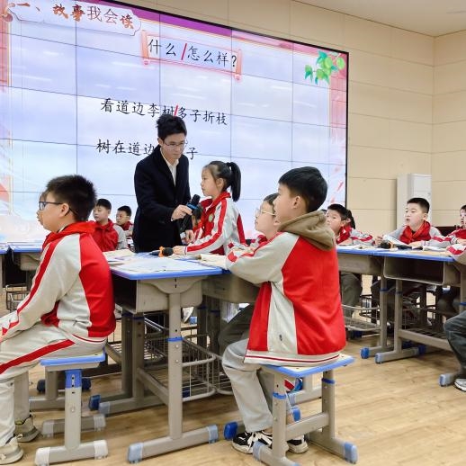 《王戎不取道旁李》(李胜 嵩市中心小学):这节文言文课上,李老师用“猜字谜”引出“戎”字,再结合视频梳理故事情节。学生们通过学习文言文的朗读方法以及角色扮演——“王戎为什么不摘李子?”,不仅读懂了古文含义,更学会了“遇事多思考”的道理,传统文化与思维训练巧妙结合。