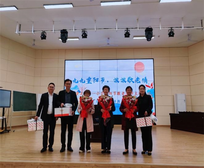 座谈会最温情的时刻,莫过于为今年恰逢七十、八十整寿的老教师们举行的集体祝寿仪式。伴随着《生日快乐》的温馨旋律,学校领导推上精心定制的生日蛋糕,烛光映照着一张张慈祥的笑颜。党支部书记、校长郑海兰、副书记王剑、支部委员陈建刚为寿星们送上满载敬意的鲜花与蛋糕,全场齐声合唱,用最真挚的歌声祝福老教师们福寿安康。今年七十高龄的林老师激动地说:“在学校过了大半辈子重阳节,这次最特别、最暖心!”