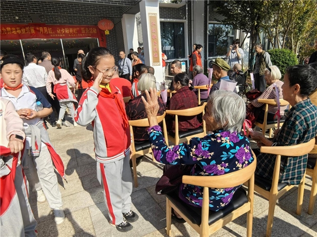 上午,金溪县秀谷二小党员教师带领部分少先队员们与金溪红色文化促进协会、县仰山社区一同走进津泽康养院,为老人们送去温暖与欢乐。同学们依次登台献上精彩节目,声情并茂的朗诵《话重阳》、清新悦耳的电子琴独奏《菊次郎的夏天》、朝气蓬勃的舞蹈《少年有志》……一个个节目赢得现场掌声不断。演出结束后,孩子们将鲜花与节日祝福送给每位老人,一声声“爷爷奶奶重阳节快乐”,让老人们脸上洋溢着幸福与感动。