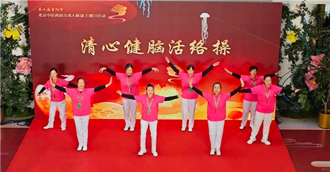 在“第二届重阳节北京中医药助力老人健康主题日”活动现场,在专业人员的带领下,各社区代表共同学习并演练融合中医经络理论与现代康复理念的清心健脑活络操,通过呼吸调节、穴位按摩帮助中老年朋友疏通经络、调节气血,达到清心、健脑、活络全身的效果,经常练习,可预防心脑血管疾病。此次活动借重阳敬老之机,为社区健康养老提供了一套易于学习的中医保健方法,让关爱化为了具体的健康行动。