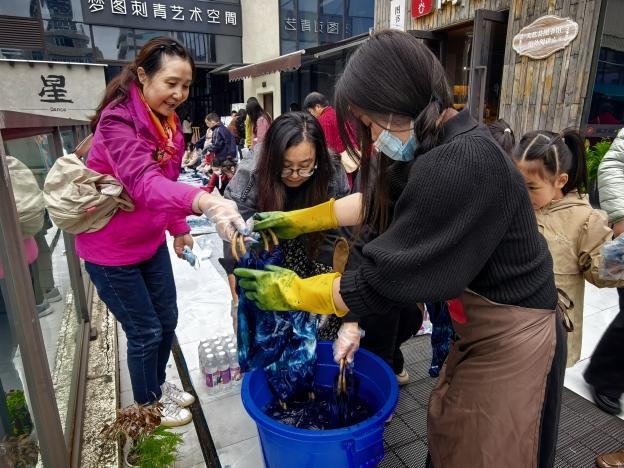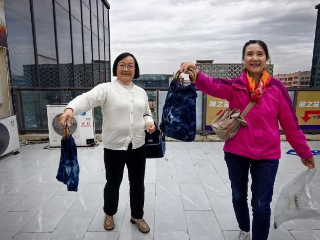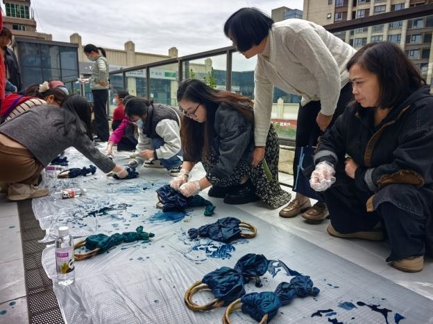 活动最后,在专业手工老师张玉美的指导下,中老年朋友们亲手体验了扎染技艺,制作出了独一无二的竹柄包。这一环节不仅让大家在实践中感受到了传统文化的魅力,还激发了大家的创造力和动手能力,为活动增添了一抹亮丽的色彩。