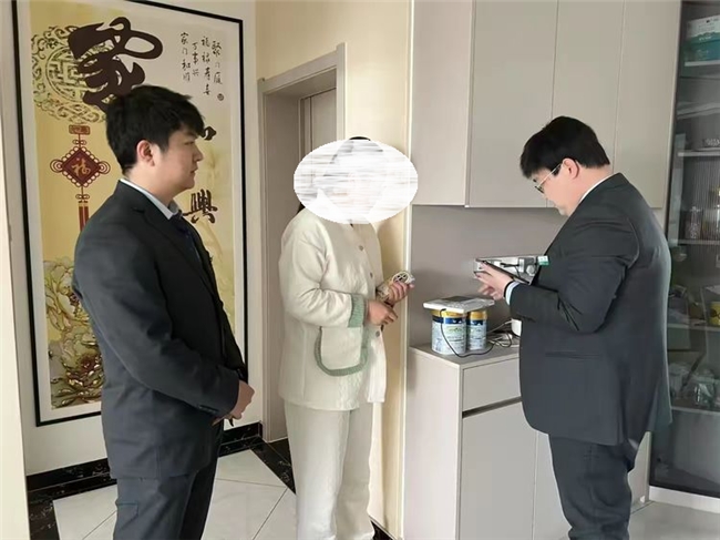 出发前,工作人员特意再次致电李女士,确认其休息时段,避免上门时打扰母婴休息。抵达小区后,两人轻手轻脚上楼,进门第一时间轻声向李女士问好,随后便拿出消毒用品,对携带的移动终端、签字用笔、工作台面等进行全面细致的消毒,全力保障产妇和宝宝的健康安全。