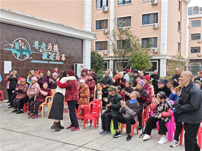 演出当天,九祥康养中心院内暖意融融,老人们早早坐定等候,脸上洋溢着期待的笑容。随着欢快的音乐响起,文艺汇演正式拉开帷幕。歌舞节目《走进新时代》以昂扬的旋律、舒展的舞姿,生动展现了中国式现代化建设的蓬勃生机,传递出对党的二十届四中全会描绘的发展蓝图的憧憬;女声独唱《江山》深情婉转,唱出了“人民至上”的赤子情怀,与全会强调的“坚持人民至上”重要原则同频共振。最受老人们欢迎的当属经典采茶戏《卖子救公》,演员们身着传统戏服,以婉转悠扬的唱腔、灵动鲜活的身段,将乡土人情与生活百态展现得淋漓尽致,不少老人跟着轻声哼唱,现场掌声、喝彩声此起彼伏。整场演出形式多样、内容丰富,既富有文化韵味,又饱含时代气息。在精彩表演的间隙,主持人与老人们宣传互动,用通俗易懂的语言讲解“十五五”时期民生发展新部署,耐心解答养老服务、健康保健等相关咨询,让政策宣传融入文化活动,实现“看戏学精神、听戏知政策”的良好效果。
