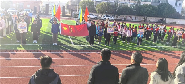 伴随着激昂的《运动员进行曲》,各班级方阵迈着整齐步伐依次入场。同学们手持彩旗、花束,高喊嘹亮口号,展现出朝气蓬勃的精神面貌。