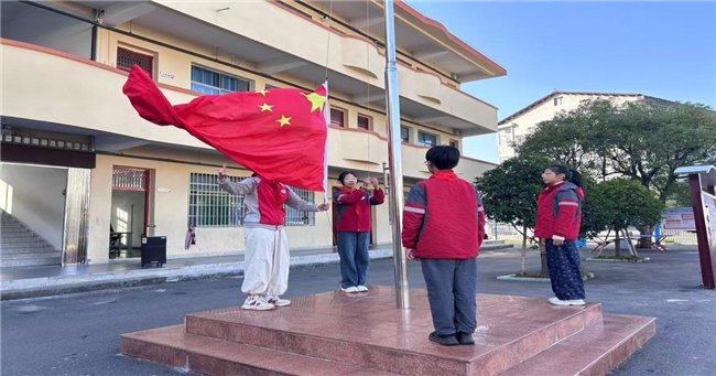 升旗仪式在庄严的国歌声中拉开帷幕,全体师生肃立,向国旗致以崇高的敬意。