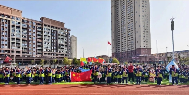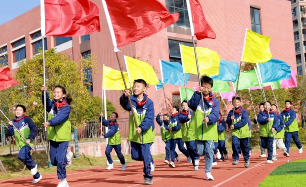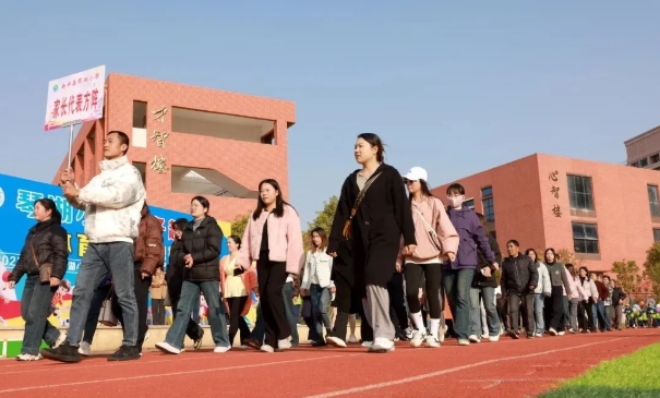 彩旗队手持彩绸迎风展动;志愿者方阵的红色马甲、家长代表方阵的笑靥,依次铺展成家校共育的温情底色。