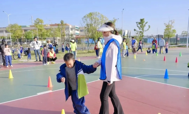 本次赛程覆盖竞技、协作、亲子等多元维度。“勇闯雷阵”的赛场上,标志盘已摆成蜿蜒的线,家长蒙眼蓄势待发;“蛇战”的候场区,5位家长已试着牵起衣角,笑里藏着“护好队尾”的认真。