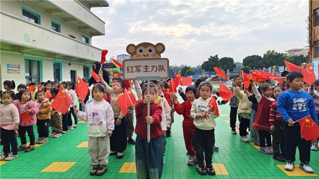 12月9日,资溪县高阜中心幼儿园举办了一场别开生面的冬季运动会,就地取材以“运粮草、爬雪山、过草地、飞夺泸定桥、四渡赤水”等红军长征经典场景为主题开启冬日暖阳下红色之旅,让孩子们在趣味运动中感受红色文化,锻炼身体。