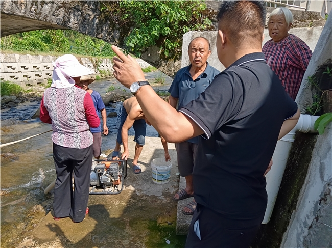 水源何处寻?引水如何通?县、乡人大代表武广茂与乡人大代表熊瑞辉的脚步片刻未停。他们直奔旱情最重的田块,俯身细察龟裂的土壤和蔫垂的秧苗;又赶往几近干涸的水源地,蹲在渠边查看水位,眉头紧锁。烈日灼烤着大地,田埂上、沟渠旁,县、乡人大代表们与忧心如焚的村民们自然而然地围拢在一起。没有会议室,田间地头就是会场。大家你一言我一语,手指着干裂的田块,比划着引水的路线,现场敲定解决问题的具体方案。
