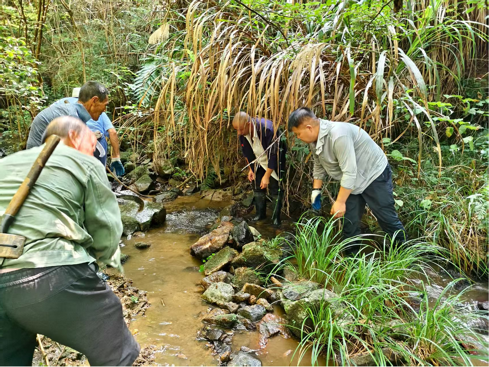 方案既定,行动紧随其后。第二天,面对年久失修、淤塞严重的主干水渠,南源乡人大发动人大代表、村民到水渠挥动铁锹,汗水在飞扬的尘土中滚落,泥浆溅满了裤腿,众人合力清淤除障、加固渠壁,沉寂的水渠在争分夺秒的抢修中重现畅通。为开辟更多“活水”。第三天,人大代表更是不畏山高路陡,带领村干部和村民到高山溪涧源头,崎岖的山径挡不住决心,大家手持镰刀、锄头,肩扛手抬,搬运石头。终于,汩汩清泉顺着新架的管道奔涌而下,流入干涸的渠道和田垄,浸润着村民们焦灼的心田,也唤醒了田野重生的希望。