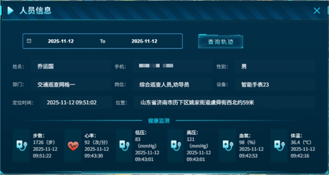 人性化设计,守护一线安全:考虑到户外作业人员的健康安全,平台配套智能手环,可 24 小时实时监测血压、血氧、心率等关键数据,一旦数值超出安全阈值,手环立即发出警报并向管理人员推送预警信息,为劳动者筑起 “健康防线”。客户端界面采用大字体、清晰图标设计,作业任务与路线导航一键直达,大幅降低操作门槛。